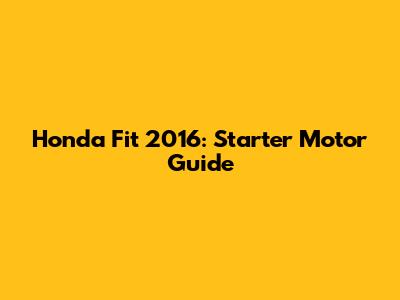Honda Fit 2016: Starter Motor Guide