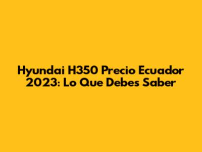 Hyundai H350 Precio Ecuador 2023: Lo Que Debes Saber