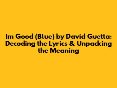 I'm Good (Blue) By David Guetta: Lyrics Deep Dive & Meaning