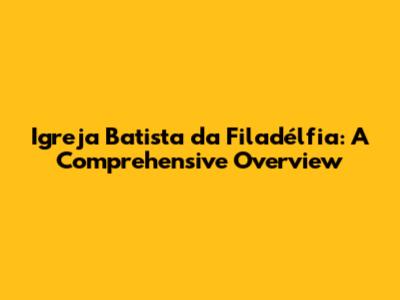 Igreja Batista Da Filadélfia: A Comprehensive Overview
