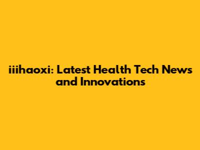 Iiihaoxi: Latest Health Tech News And Innovations