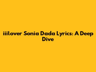 Iiilover Sonia Dada Lyrics: A Deep Dive
