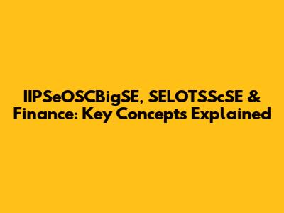 IIPSeOSCBigSE, SELOTSScSE & Finance: Key Concepts Explained