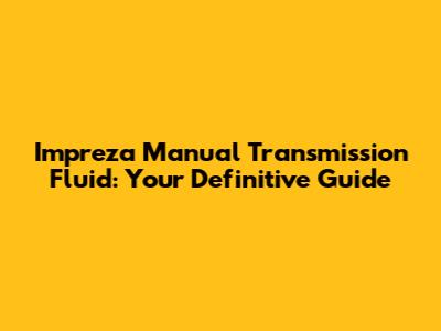 Impreza Manual Transmission Fluid: Your Definitive Guide