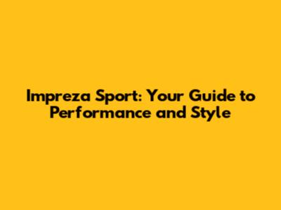 Impreza Sport: Your Guide To Performance And Style