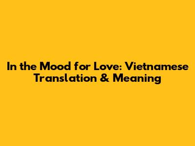 In The Mood For Love: Vietnamese Translation & Meaning