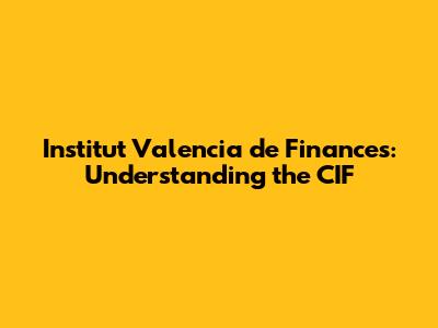 Institut Valencia De Finances: Understanding The CIF