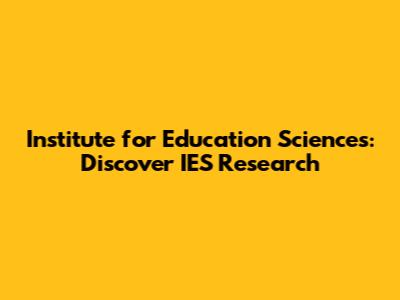 Institute For Education Sciences: Discover IES Research