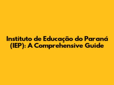 Instituto De Educação Do Paraná (IEP): A Comprehensive Guide
