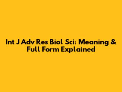 Int J Adv Res Biol Sci: Meaning & Full Form Explained