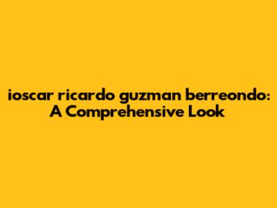 Hey guys, let's dive into something a bit specific today: ioscar ricardo guzman berreondo. Yeah, it's a mouthful, but trust me, understanding this individual, his background, and what makes him tick can be pretty interesting. We'll break down everything from his early life to his current endeavors, giving you a complete picture. So, buckle up, and let's get started.