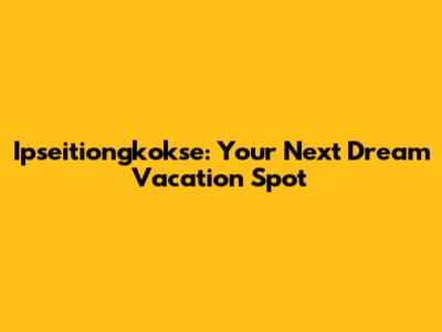 Ipseitiongkokse: Your Next Dream Vacation Spot