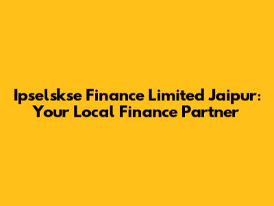 Ipselskse Finance Jaipur: Your Local Finance Partner