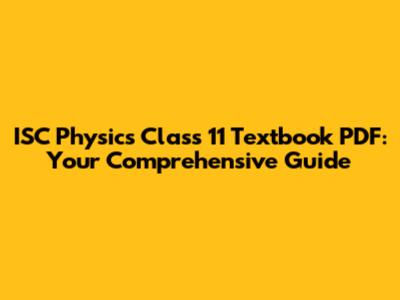 ISC Physics Class 11: Textbook PDF & Expert Tips
