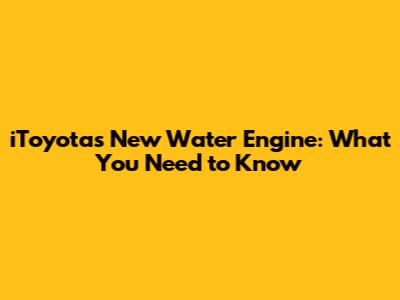 IToyota's New Water Engine: What You Need To Know