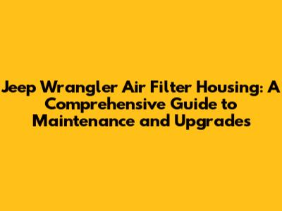 Jeep Wrangler Air Filter Housing: A Complete Guide