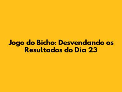 Jogo Do Bicho: Resultados E Dicas Do Dia 23