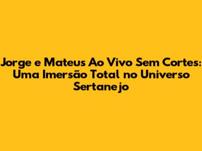 "Jorge e Mateus Ao Vivo Sem Cortes" é a oportunidade perfeita para reviver os melhores momentos do sertanejo e se conectar com a música de uma forma ainda mais profunda. Não perca a chance de assistir a esse show completo e se emocionar com as canções que marcaram a sua vida. Prepare-se para uma experiência musical inesquecível!