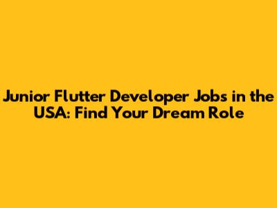 Junior Flutter Developer Jobs In The USA: Find Your Dream Role