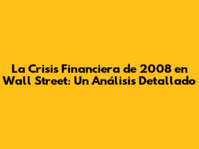 La Crisis Financiera De 2008 En Wall Street: Un Análisis Detallado