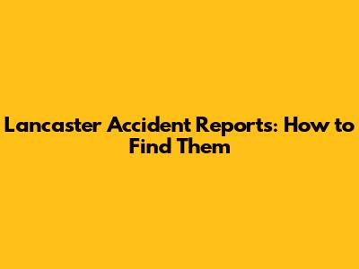 Lancaster Accident Reports: How To Find Them