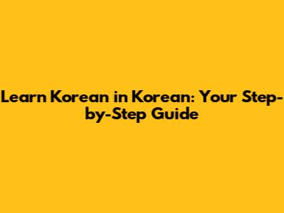 Learn Korean In Korean: Your Step-by-Step Guide