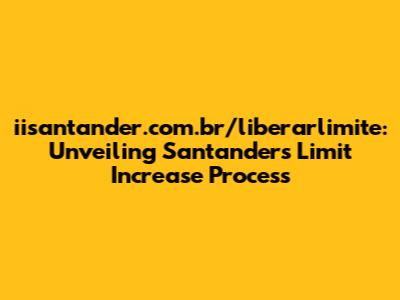 Okay, so what's the deal with iisantander.com.br/liberarlimite? Well, it seems to be a specific webpage or portal related to Santander Brazil (Santander Brasil) that deals with requesting or managing credit limit increases. The important thing to note here is that it's specific to Santander Brazil. If you're not in Brazil, this particular URL probably won't be relevant to you. Instead, you'll need to look at the specific processes for your region.