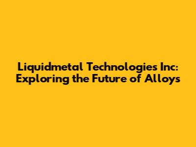 Hey guys! Ever heard of Liquidmetal Technologies Inc.? If not, you're in for a treat. This company is pushing the boundaries of material science, and their innovative alloys could revolutionize various industries. So, let's dive deep into what Liquidmetal Technologies is all about, why they're making waves, and what the future might hold for this fascinating field. Ready to explore the world of advanced alloys? Let's get started!