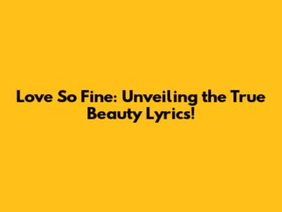 Love So Fine: Unveiling The True Beauty Lyrics!