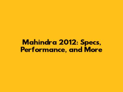 Mahindra 2012: Specs, Performance, And More