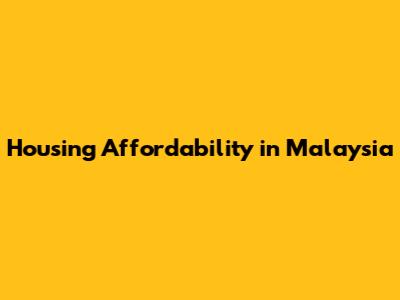 Malaysia Housing Affordability: Issues And Solutions