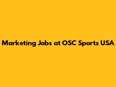 Marketing Jobs At OSC Sports USA
