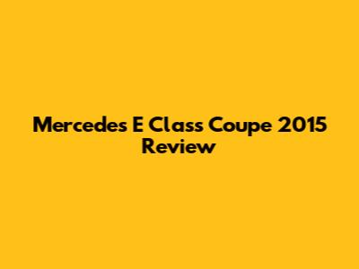 Mercedes E Class Coupe 2015: Reviews, Specs & More