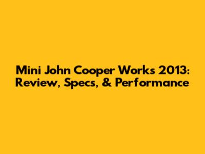 Mini John Cooper Works 2013: Review, Specs, & Performance