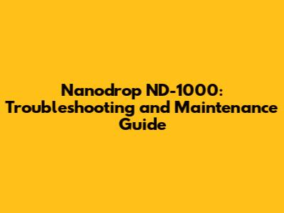 Nanodrop ND-1000: Troubleshooting And Maintenance Guide