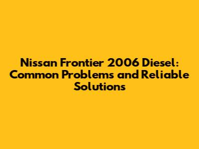 Nissan Frontier 2006 Diesel: Problems & Solutions
