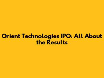 Orient Technologies IPO: All About The Results