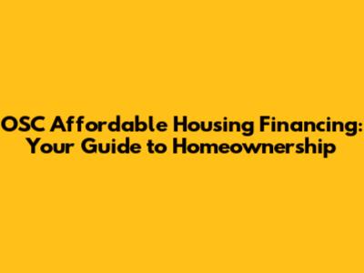 OSC Affordable Housing Financing: Your Guide To Homeownership