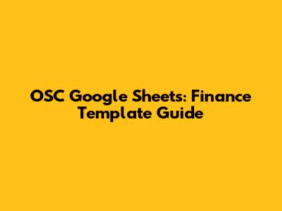 OSC Google Sheets: Finance Template Guide