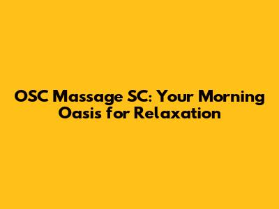 OSC Massage SC: Your Morning Oasis For Relaxation