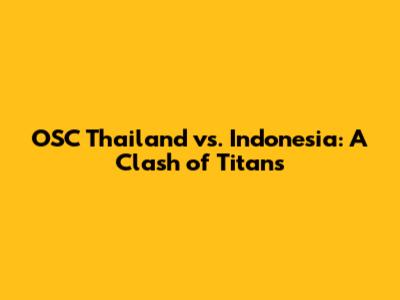 OSC Thailand vs. Indonesia: A Clash of Titans