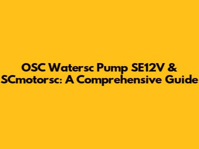 OSC Watersc Pump SE12V & SCmotorsc: A Comprehensive Guide