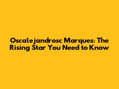 Oscalejandrosc Marques: The Rising Star You Need To Know
