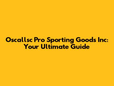 Oscallsc Pro Sporting Goods Inc: Your Ultimate Guide