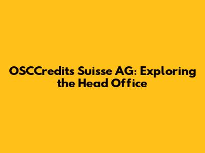 In conclusion, the OSCCredits Suisse AG head office is a multifaceted entity that plays a vital role in the company's success. It is a center of strategic decision-making, a hub of activity for key departments, and a gateway to the global financial community. By understanding the significance of the head office, we can gain valuable insights into the operations, culture, and overall mission of OSCCredits Suisse AG.
