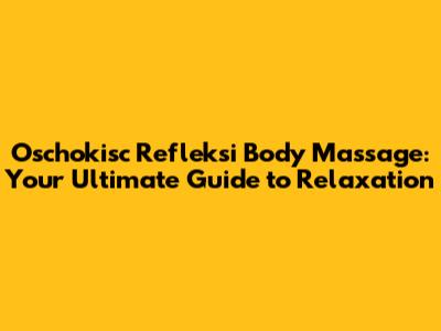 Oschokisc Refleksi Body Massage: Your Guide