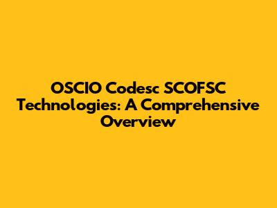 OSCIO Codesc SCOFSC Technologies: A Comprehensive Overview