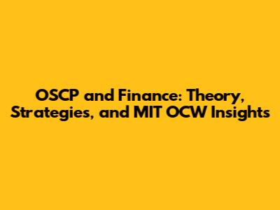 OSCP And Finance: Theory, Strategies, And MIT OCW Insights