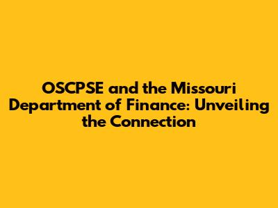 OSCPSE & Missouri Dept. Of Finance: A Deep Dive