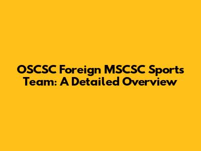 OSCSC Foreign MSCSC Sports Team: A Detailed Overview